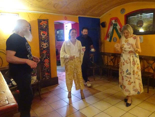 Tož došlo i na tanec — zde Jan Rajlich, Štěpánka Skalická, Martin Skalický a Věra Skalická