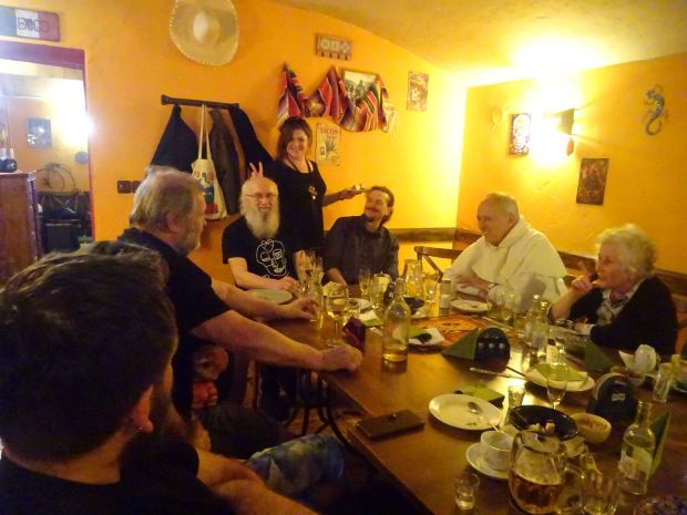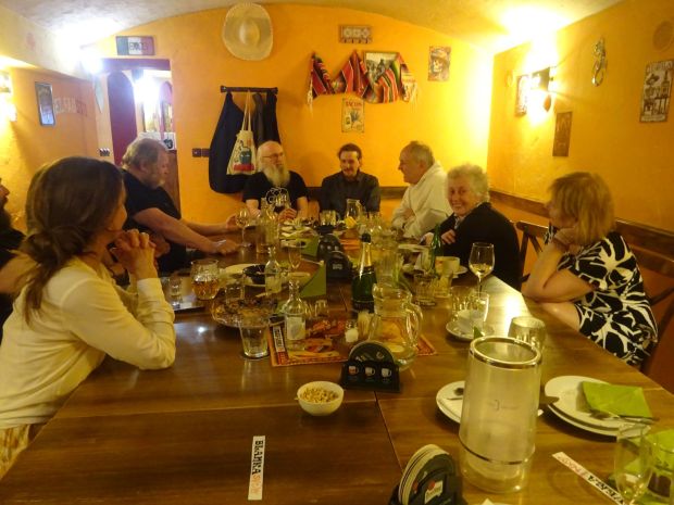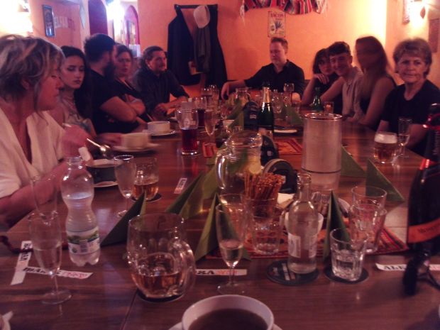 Obědová tabule... Zleva Blanka Skalická, Julie Skalická, Martin Skalický, Magdaléna Rajlichová, Arťom Ignatyev, Vít Procházka, Zuzana Drybčáková, Matyáš Dostalík, Markéta Dostalíková a Dana Otradovcová....