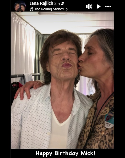 ...Jana se přátelí od 90. let s Rolling Stones, v roce 2023 byla v Londýně hostem oslav 80. narozenin Micka Jaggera...